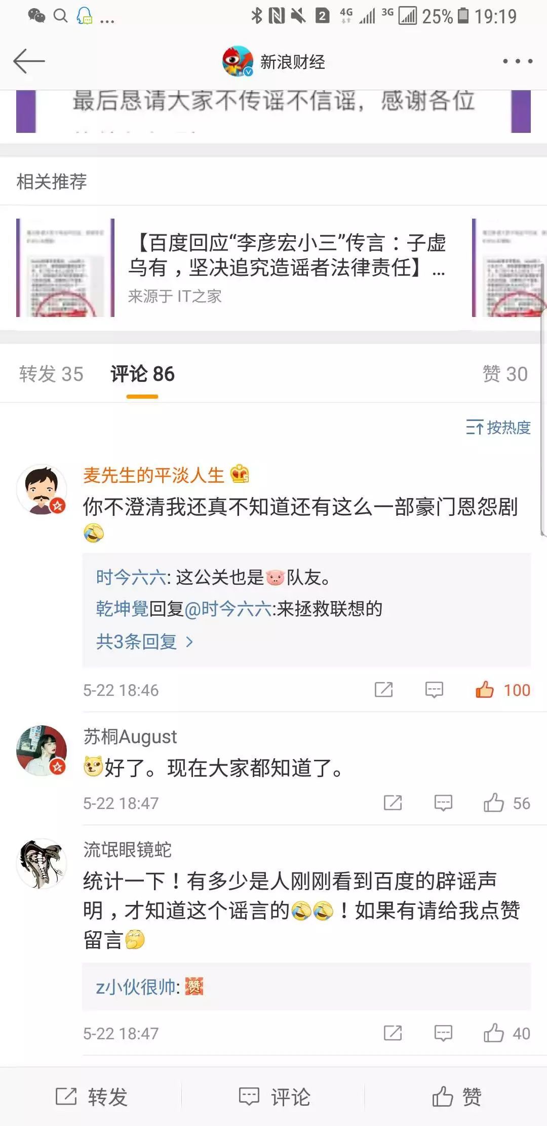 事实上无论是百度声明,还是新浪财经据此进行的转发报道,下方留言不乏吃瓜群众表态,本来都不知道怎么回事,但这下全知道了。