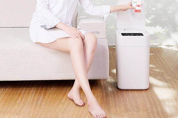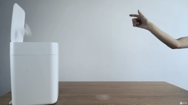 下面重点说一下这款垃圾桶的主要的卖点。首先是自动感应开关盖子。