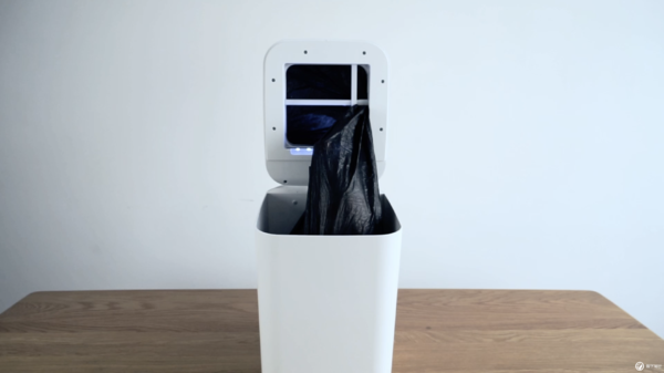 第二个卖点呢就是自动打包垃圾袋和自动放置新垃圾袋的功能了。