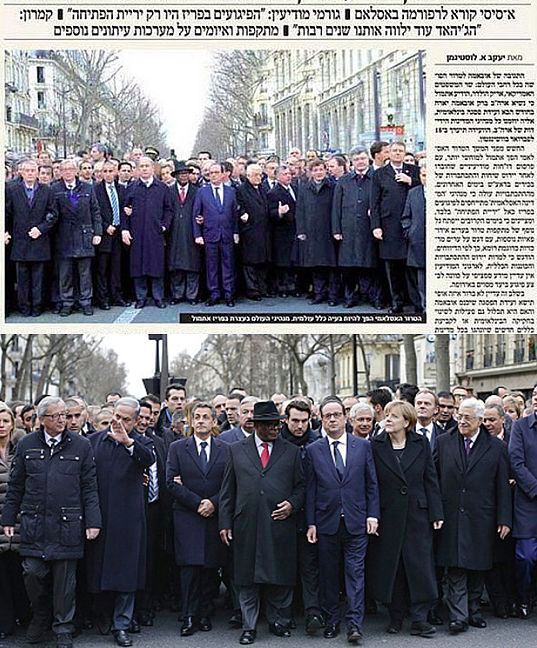 (图为以色列媒体报道中将包括法国总理默多克在内的女性抹掉)