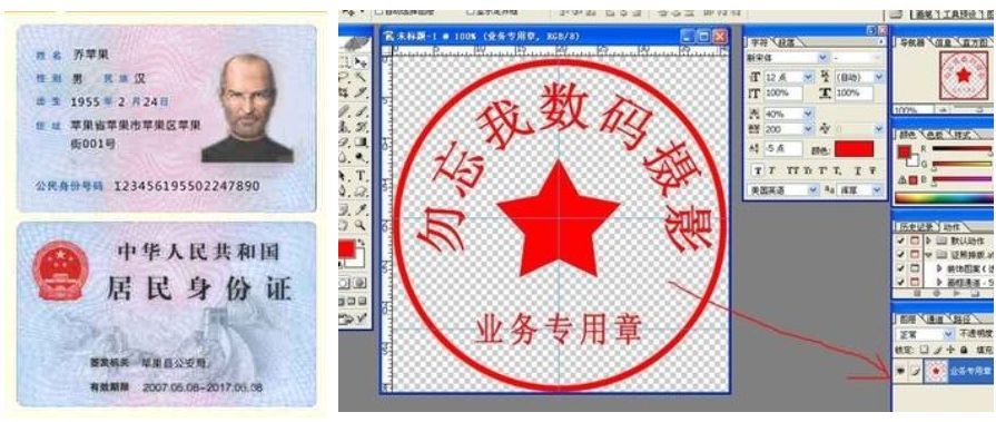 后来,越来越多的普通人掌握了PS技术,造假证、假章也变得很容易: