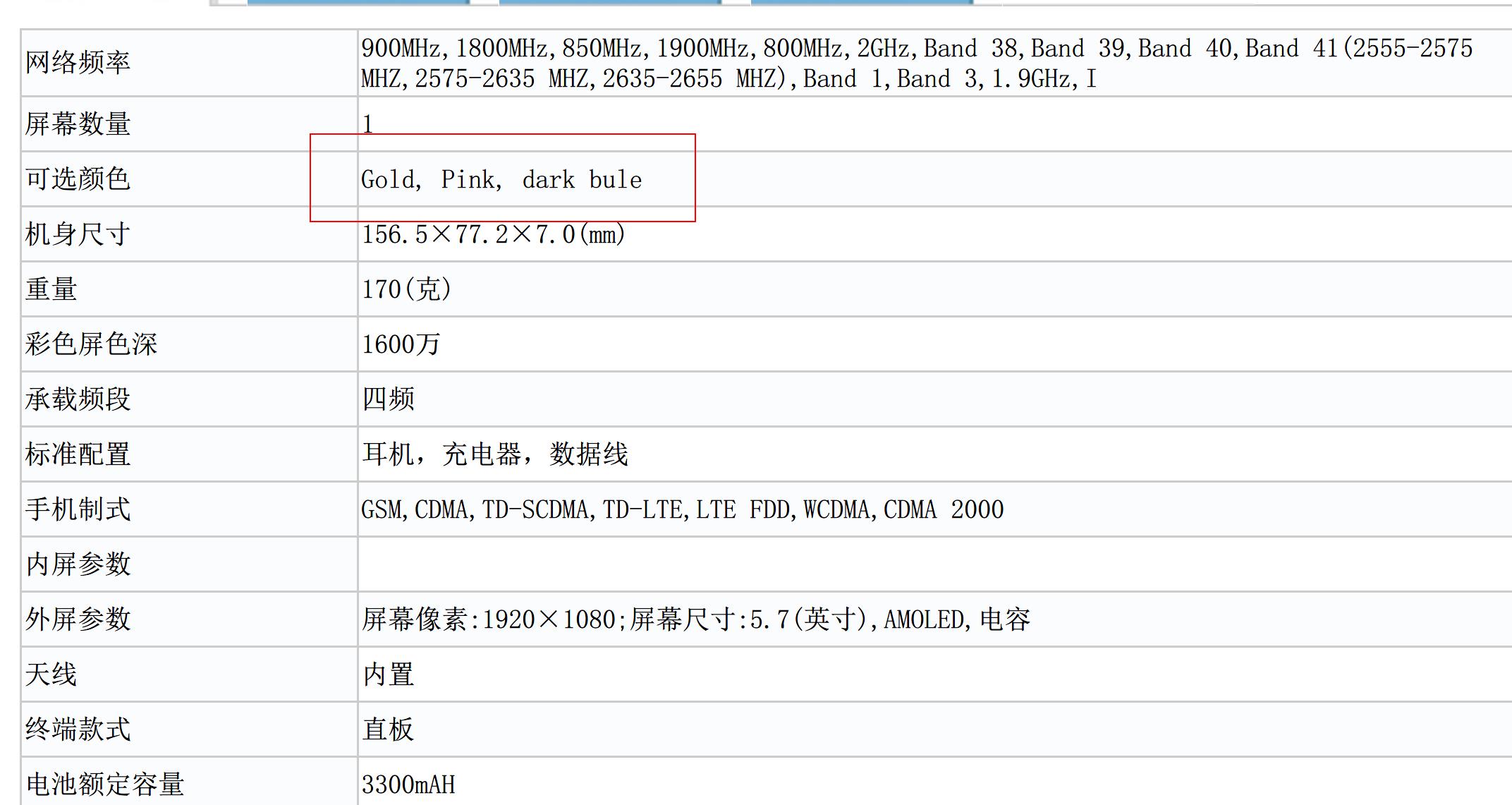 此外,工信部网站显示,该机除了C系列既有的金色、玫瑰金色外,还将新增“dark blue”的配色,而银色则可能被取消。因为没有用逗号区隔,暂时不确定“dark blue”是指黑色和蓝色两种颜色,还是深蓝色一种颜色。