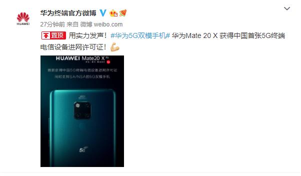 日前,工信部正式发放四张5G商用牌照,中国开始真正进入5G商用时代,作为其中的重要一环,5G终端也加速推进。6月25日,华为终端在官方微博宣布,华为Mate 20 X(5G)获得中国首张5G终端电信设备进网许可证,编号为001。
