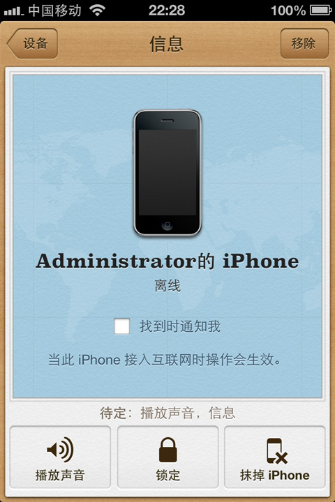 最基本的找回丢失的iPhone手机的方法,其实苹果已经给了,苹果官方推出的“查找我的iPhone”功能就是专门针对iPhone被盗的情况,这款应用非常实用,能够在卫星地图上定位你iPhone的位置,还能远程发送消息、远程锁定或者远程擦除iPhone里面的资料信息,还能够远程发送声音到iPhone上面,即使找不回丢失的iPhone,也能删除iPhone 里的隐私信息,将损失降到最低。