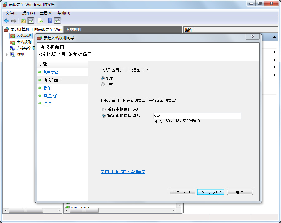 屏蔽Windows电脑445端口的方法:打开管理工具-高级安全 Windows 防火墙,添加入站规则→TCP协议、特定本地端口(输入445)→阻止连接→完成。即可防止最新的勒索蠕虫病毒。