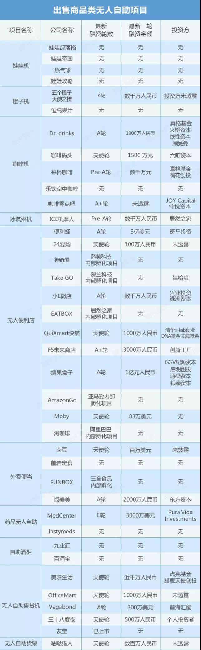 这个列表的另一个名字叫作“无人自助领域项目融资表”。