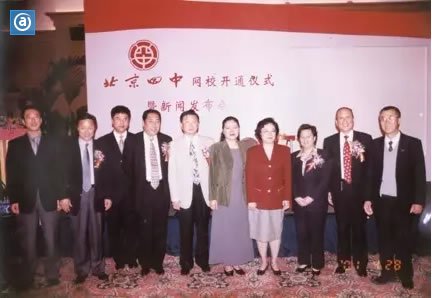 △北京四中网校成立,黄向伟(左三)、吴士宏(右五)与时任北京副市长林文漪合影留念