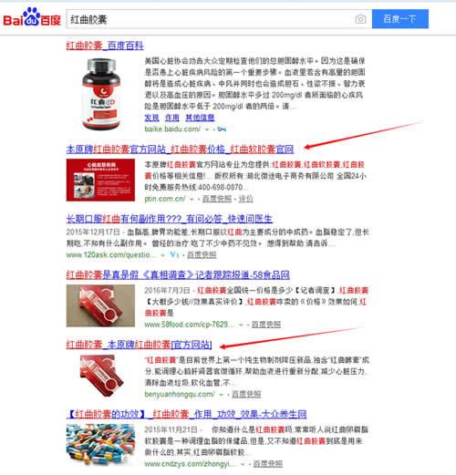 案例二、红曲胶囊:这个产品也是我们做百度竞价的时候一个非常重要的产品,这个产品每个月大约会给我带来12000-15000的利润,这是我很喜欢的一个产品,成交率非常高,而且老客户很多;这个产品当时的广告费也是每天200到300,如果按照这个计算,现在这个产品没有人投竞价,那么这个网站每个月可以做到20000-25000的利润。