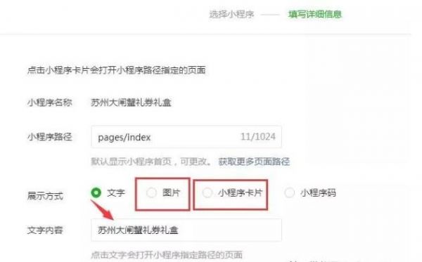 比如举例本篇,插入下大闸蟹的小程序哈,点它即可查看苏州大闸蟹礼券礼盒~