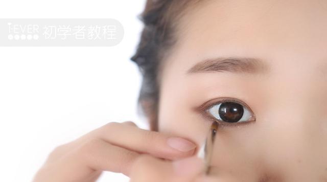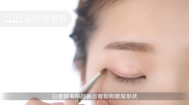 STEP2:蘸取深棕色眼影,沿着睫毛根部画出眼影和眼尾形状。