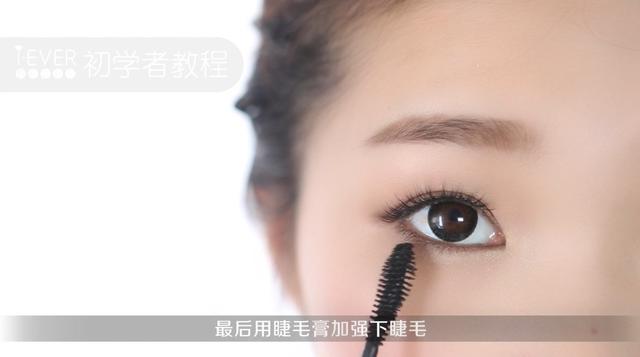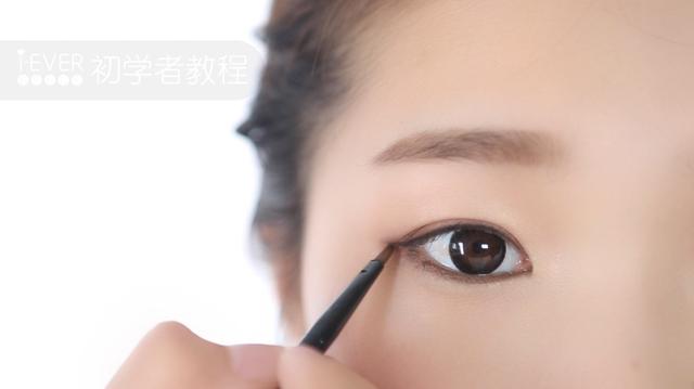 STEP5:蘸取黑色眼线膏,画出内眼线并适当拉长眼尾。