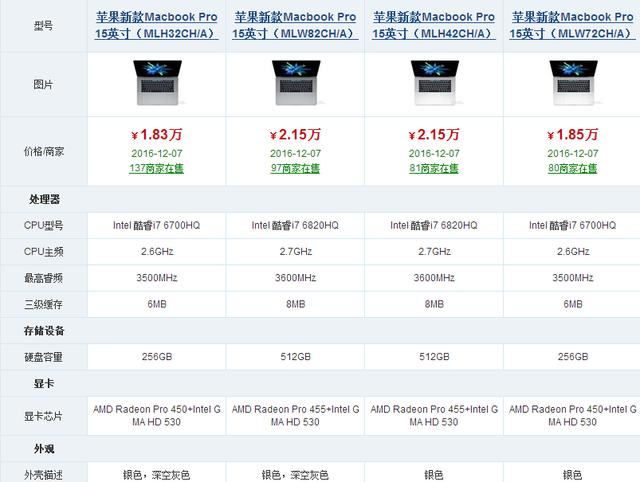15英寸的Macbook pro:除了一万六千多的MJLT2CH/A,就是以下这几款了。