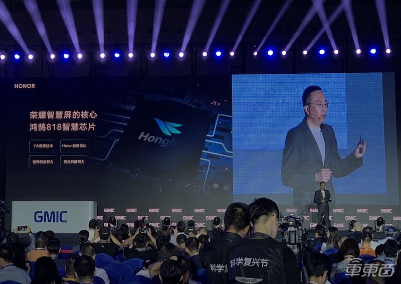 随后的7月26日,赵明在接受智东西采访时透露,荣耀智慧屏的芯片将会由三个芯片组成:鸿鹄818智慧显示芯片、麒麟AI芯片、凌霄Wi-Fi芯片。鸿鹄818是荣耀智慧屏的核心芯片,是基于海思电视芯片而研发的新型智慧屏芯片,未来会开放给其他厂家使用。