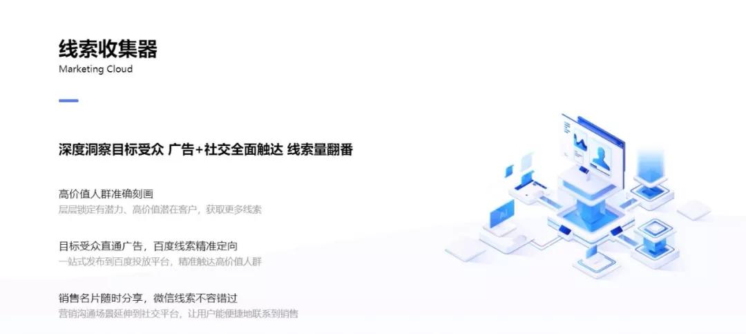 2、目标受众直通广告,百度线索精准定向:一站式发布到百度投放平台,精准触达高价值人群。