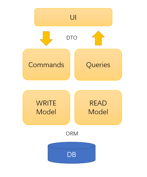 我们经常用到的解决方案就是对数据库进行读写分离。让主数据库处理事务性的增、删、改操作,让从数据库处理查询操作,然后主从数据库之间进行同步。但是这只是从DB角度处理了读写分离,从业务或者系统层面上来说,读和写的逻辑仍然是存放在一起的,他们都是操作同一个实体对象。