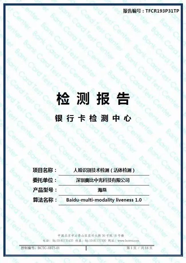 7月15日,百度人脸识别多模态活体检测算法,结合百度 AI 生态合作伙伴奥比中光的 3D 摄像头模组「海燕」,正式通过了银行卡检测中心人脸识别技术检测,活体检测能力达到国家认证的金融支付级安全标准。与此同时,百度也成为了首批通过银行卡检测中心认证的人脸识别算法厂商。