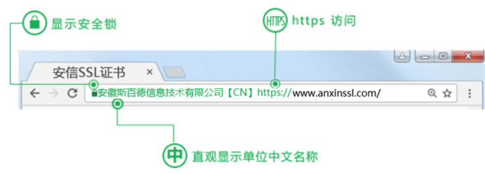 2)真实可靠:企业型SSL证书可验证企业的真实信息,点击浏览器地址栏的绿色小锁,可查看申请证书的企业信息,可有效的杜绝钓鱼网站。其中,EV SSL证书还可在浏览器地址栏显示绿色企业名称。