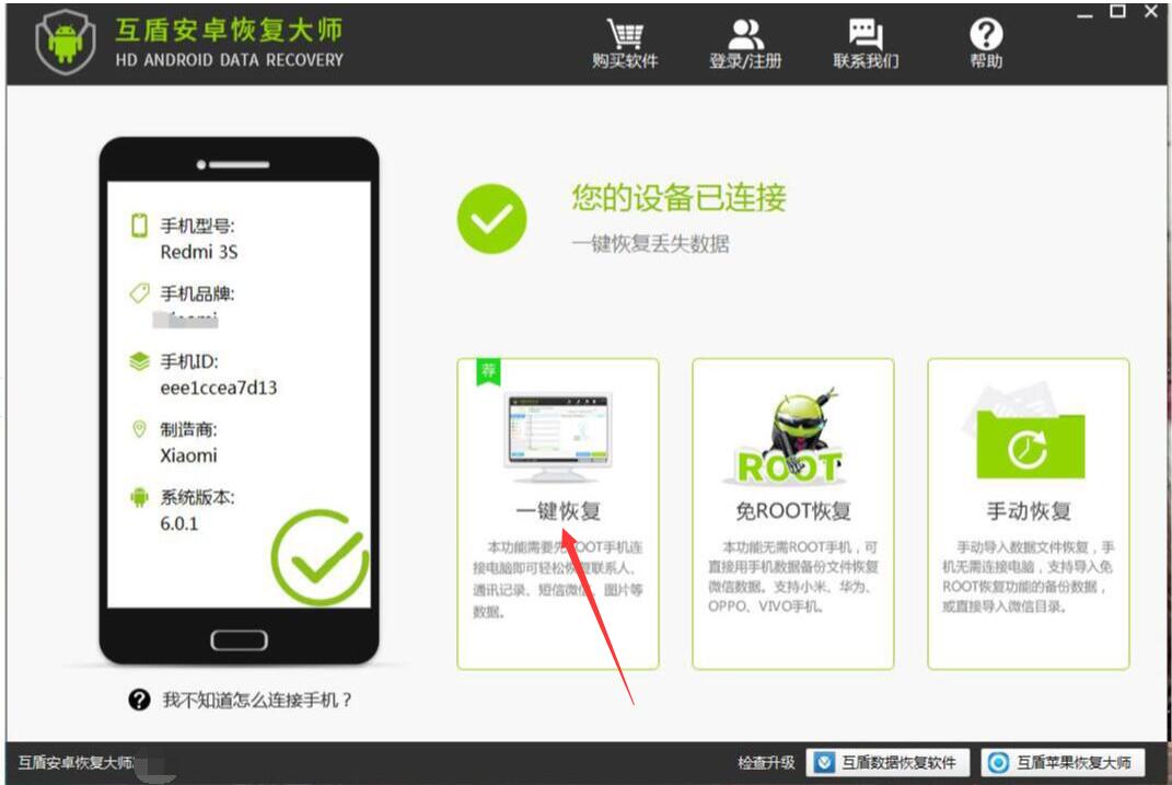 当然了,我们试了上述的三个方法没有恢复的话,直接选择【互盾安卓恢复大师】,然后连接手机和电脑,然后我们根据提示去进行操作的选择;