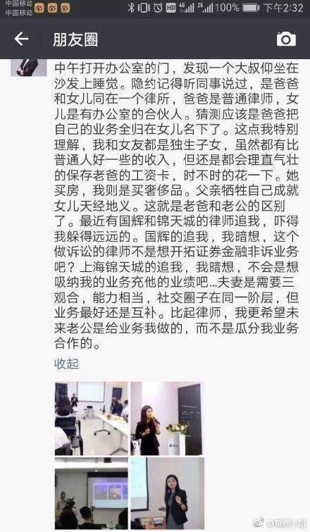 一位年轻的女律师,因为在微信朋友圈里发了一些“炫富”的言论,因此成为了热议的焦点。对此,我觉得有些悲哀。