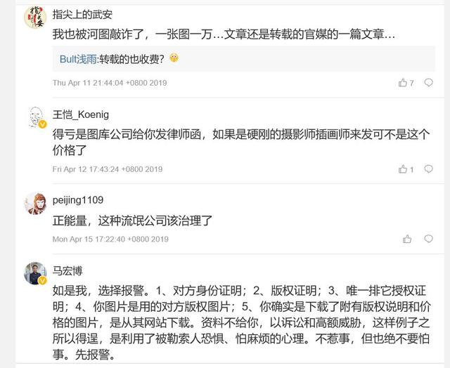 看看贴图的第一张照片,法人很得意的在法院门口很开心的拍照,这样意味着打官司她公司都是会赢的。确实如此。多次跟这家公司交涉无果,我们在法人的微博上反映了这种盈利模式,我们不太认可,立即遭到拉黑和删除。我们再看看贴图的几张图片,众多企业都是受害者,还有他们的留言和观点。