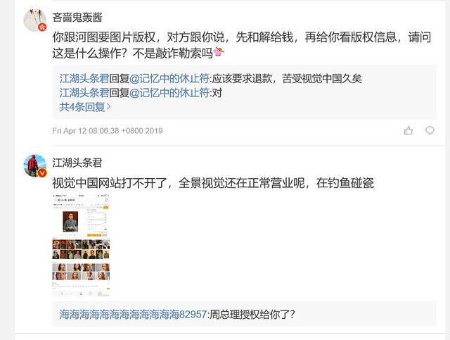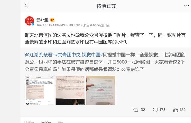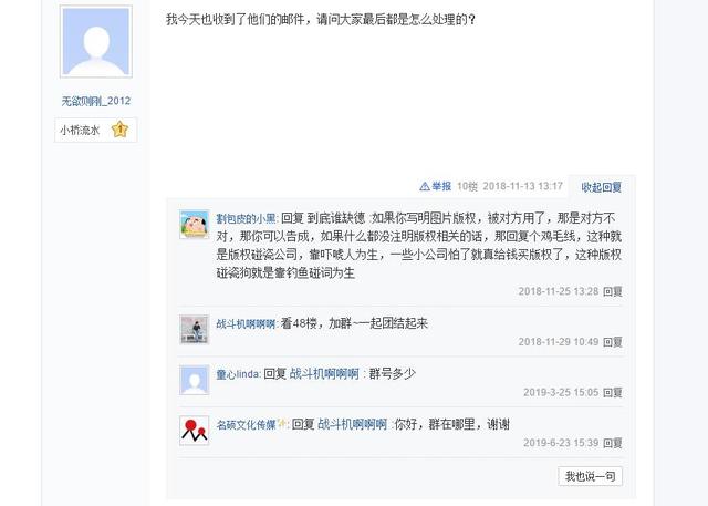 公司四:在被索赔的大量企业中,有很多都是一年前甚至5年前发布的文章,而且所有企业都表示绝对没有从河图公司的网站上下载过图片,由此我们推测,这些所谓的版权图片是否被有意散播到各种公共平台上供不知情的人免费使用?受害者群里有人说,甚至很多图片本身并不是河图拥有的版权,河图公司找到使用者和版权方后,代理版权方去起诉使用者,以此获得收益(此说法没有完整取证)