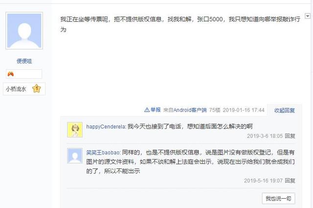 这迅速让大家知道了,这是一家专门靠起诉别人去赢一张图片,几千元的赔偿金的,这样的一个盈利模式的公司。我们几家企业接触到了图片的著作权的作者,他们说这家公司跟他以500元的价格购买版权或授权(需向作者证实,部分公司有微信对话记录)。然后把授权的时间提早几年,再去搜索这张图片的使用者,然后再去法院起诉,或者是怕事者私下私了。