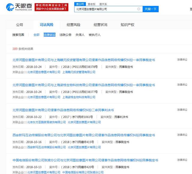 经过网络的连接,几百家企业迅速就形成了一个群体,大家共同讨论此事和把事情都摊开来讲,原来很多企业收到了这家公司的关于版权的授权书和法院起诉状。大家迅速在网络上搜索到这家河图公司的在网上有图片网,而这个图片网的版权交易量非常少。但是大家在百度上可以搜索到这家公司一年去起诉数百家企业并赢得了官司诉讼。
