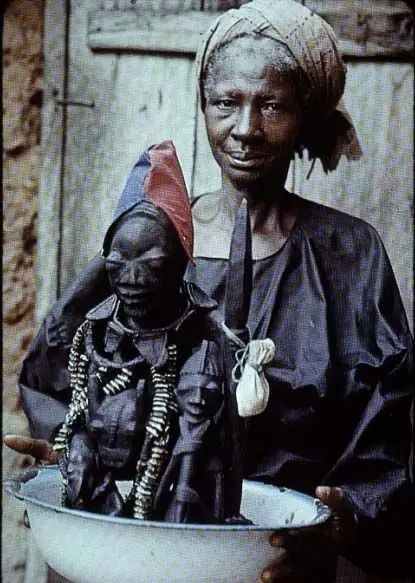 巫毒师与她的道具,海地,1960