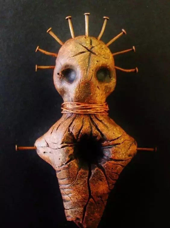 巫毒人偶的制作五花八门,布制,皮制,骨制都有,有时还会直接用上敌人的头颅。这些人偶通常被放在显眼的地方,提醒来访者注意这位巫毒师的力量。