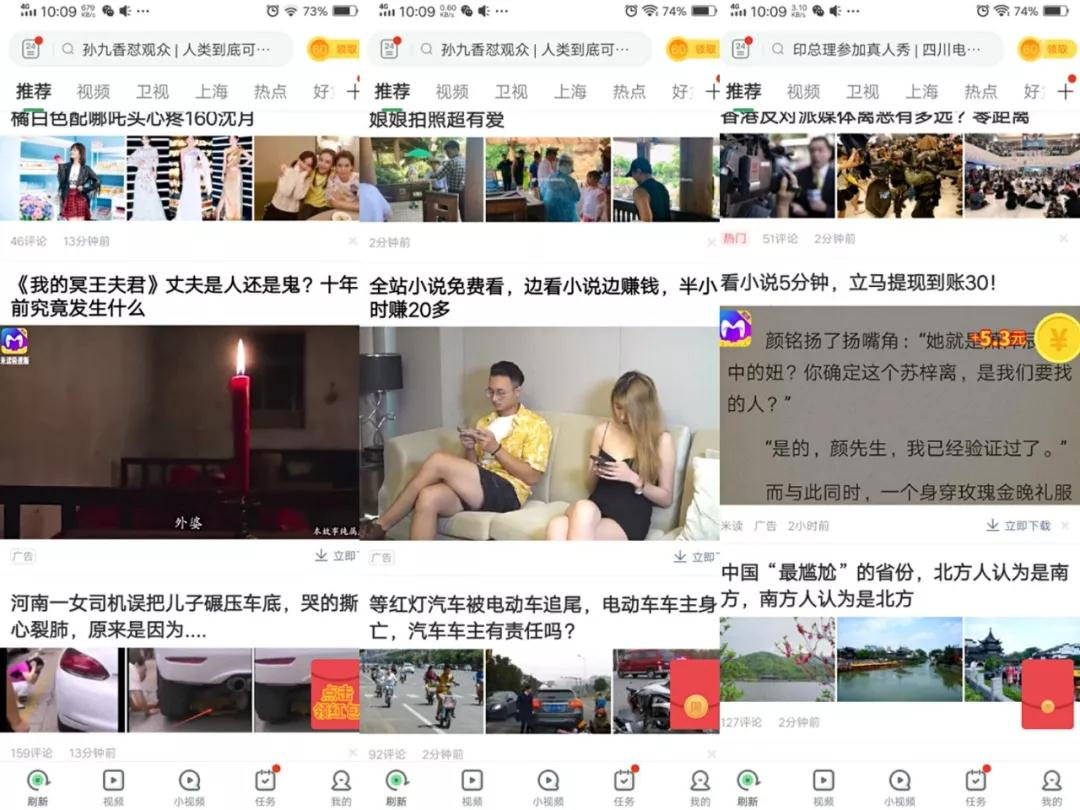 不过,在下沉市场,用户空余时间多但娱乐场所不完备,对价格敏感且爱占“小便宜”,趣头条这种既能kill time也能换取微薄收益的网赚模式更受“乡里乡亲”喜爱,而产品本身聚焦的情感、养生、娱乐八卦等内容也符合他们的口味。