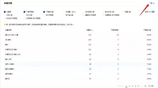 下载数据到表格里,可以看到关键词的访客数和浏览量。