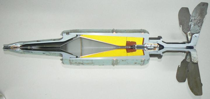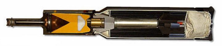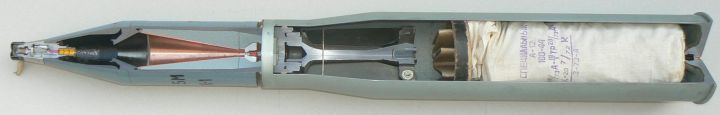 BK-5M HEAT 全弹解剖图。头部引信有手动保险,可发射前人工解除。苏联破甲弹的特点是简单可靠,便于大规模生产。
