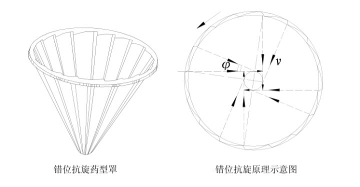 错位抗旋药型罩结构,采用先冲压后挤压的方法制成,材料为紫铜,由16个圆锥扇形快错位而成,当破甲弹在高速旋转时爆炸,每一扇形块由于错位原因,压垮速度的方向不再通过轴线,而是偏离轴线与半径为r的圆相切,这样各块扇形块的共同作用将产生旋转的金属流,其方向正好与弹丸旋转的方向相反,因此可以减小弹丸旋转带来的不利影响。