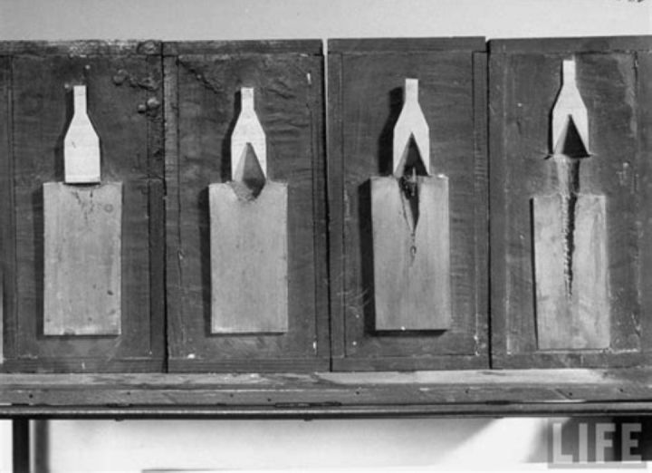 在二战时期破甲弹就有使用,图为德国Gr. HL 39 8.8cm HEAT,药型罩是半球型。由于装药需要从底部引爆,雷管位于装药的底部,同时出于破甲弹对炸高的敏感性,传统的底部触发引信并不适合破甲弹,破甲弹的引信比较独特,引信位于弹丸头部,头部触发,轰爆波通过中心管使弹底的雷管起爆,从而使弹丸爆炸。