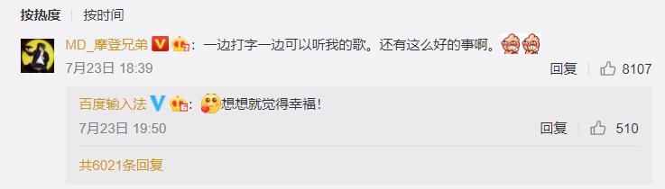 我还注意到,摩登兄弟刘宇宁还亲自发微博点评了自己的新歌《如约》定制音乐皮肤,并且还在本微博底下评论推荐,留言到“一边打字一边可以听我的歌”。这无疑是更主动、更懂你的输入法,成为摩登兄弟粉丝最贴心的音乐助手。
