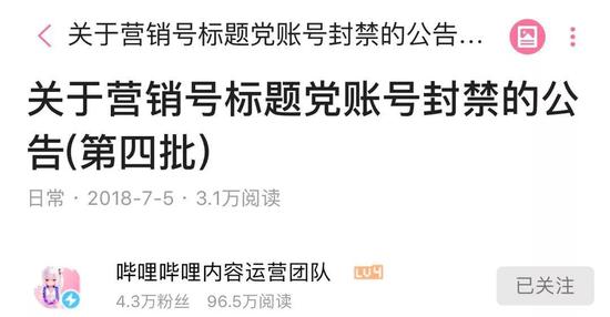 很快,哔哩哔哩内容运营团队就封禁了4批营销号标题党账号,并对相关案例进行公示。