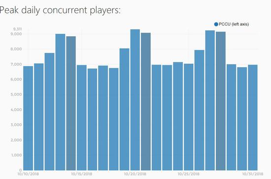 VRChat是一款免费的虚拟社交软件,由美国人Graham Gaylor和Jesse Joudrey开发,于2017年2月开始在STEAM上发行。这款软件制作于大约4年前,其开发者在10月份的一档节目中透露,最初游戏的同时在线人数只有20人左右,而2018年9月的时候,同时在线人数已经上升到9000人。根据steamspy的数据监控,近20天以来,每个周末VRChat的在线人数已基本保持在9000人,工作日同时在线人数峰值也平均在7000人左右。