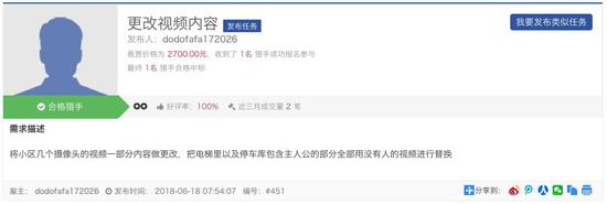 有个名叫“dodofafa”的网友想让黑客把某个小区的几个摄像头视频内容替换掉,包括电梯区、停车场。