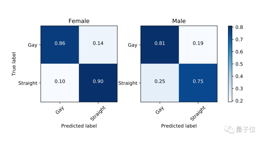 该算法还会将9%的同性恋者视为直男,也就是会识别出45人为同性恋。结果在130个“同性恋”中,有三分之二的人其实并不是同性恋。