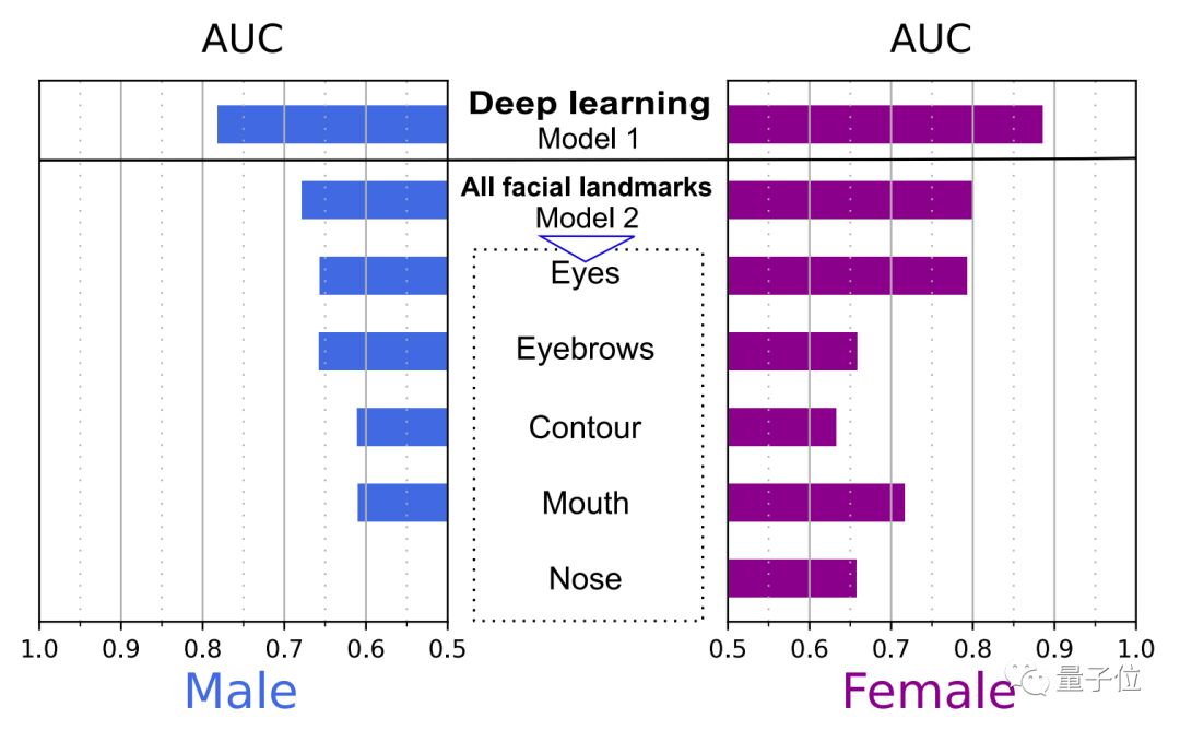 实验发现,男生的眼睛和眉毛,对AI预测性向最有指导意义,鼻子就没有帮助;