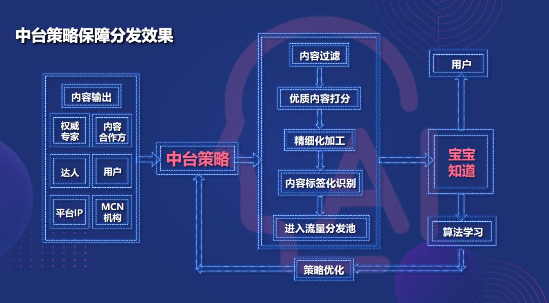 其实在互联网平台做产品做内容,都是数据和技术在做支撑。宝宝知道在这一年中都在迭代和深入地去优化我们的策略层,借助中台策略,将内容过滤、打分、精细化加工、标签化、入流量池分发等,再通过大数据算法精准推送给用户,一套完整的系统技术策略在背后做支撑,达到最高效益。我们要让更好的内容,更适合提升中国网民素质或者妈妈育儿知识的好内容得到更好的分发。