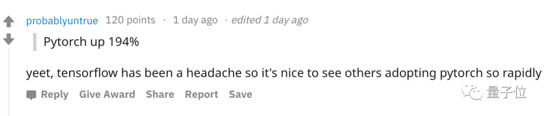 吐槽TensorFlow现场在Reddit上的机器学习板块,这一话题已经有了200热度,获得80条评论。