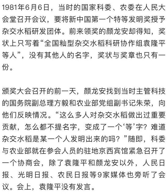 因此,那篇由袁隆平单独署名的论文,对中国的杂交水稻和袁本人都意义非凡。对于1981年的那场争论,国家科委正是通过那篇3000字左右的论文而裁定——袁隆平是国内最早研究水稻杂种优势理论的学者。