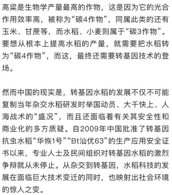 根据《中国杂交水稻的发展》一书和程式华提供的数据,杂交水稻的亩产,用了12年时间,从1976年的316公斤增长到1988年的443公斤,增长了127公斤。但又过了20年,到2011年,杂交水稻的亩产达550公斤,只增长了110公斤不到。人们不禁会问:杂交水稻产量是否接近“天花板”?杂交水稻这一技术是否将会被淘汰?