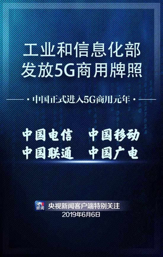 央视快讯:工信部向中国电信、中国移动、中国联通、中国广电发放5G商用牌照。