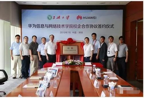 7月24日,三峡大学与华为技术有限公司在深圳签署华为信息与网络技术学院校企合作协议。双方将面向新一代信息通信技术(ICT)和高等教育发展未来,在人才培养、双创教育等领域开展全方位合作。三峡大学校长何伟军与华为技术有限公司教育行业总裁徐俊共同为三峡大学华为信息与网络技术学院揭牌。