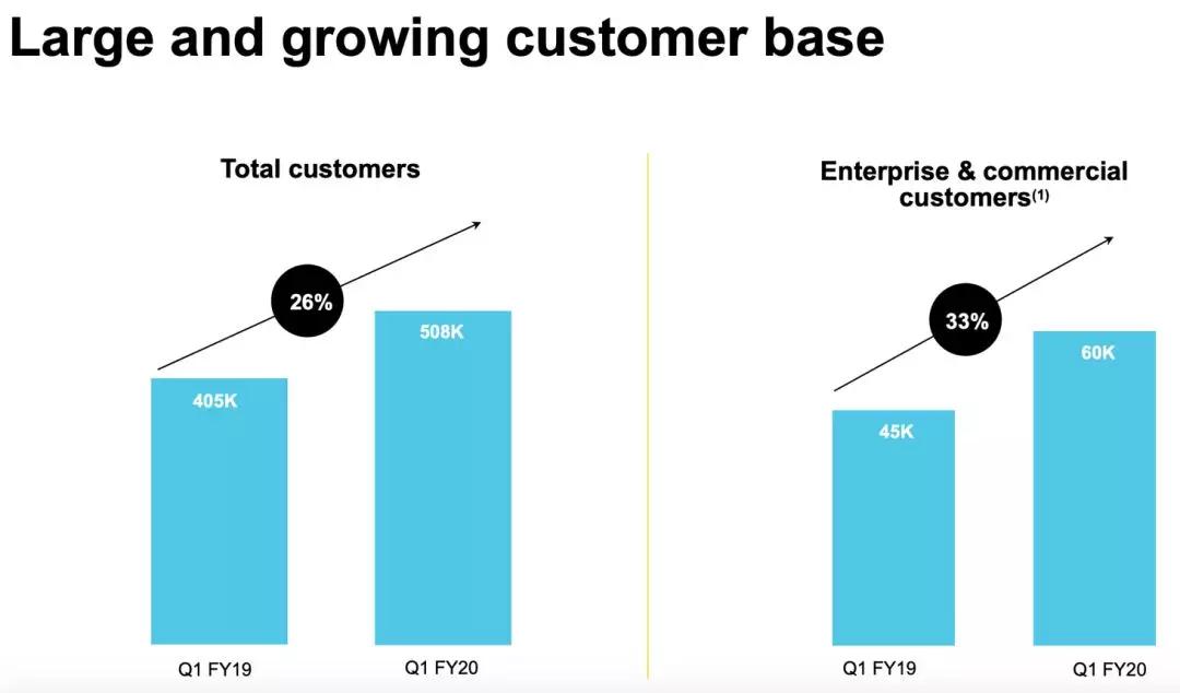 今年4月,DocuSign在财报中透露,今年一季度总收入2.14亿美元,同比增长37%。订阅收入2.015亿美元,同比增长36%。预计在未来一年,全球个人用户数的增长将高达26%,而企业客户的增长将高达33%。