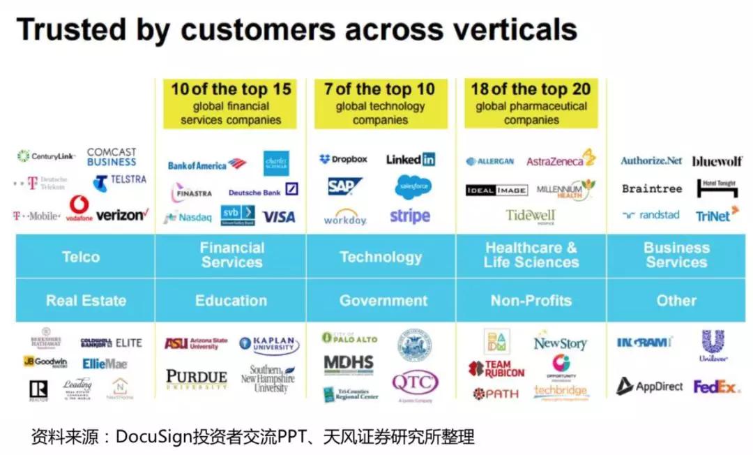 事实上,DocuSign目前被众多世界级的大型企业广泛接受和采用,其中全球15家顶尖金融公司中,有10家采用其方案。