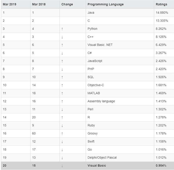 2019年3月份编程语言排行榜
