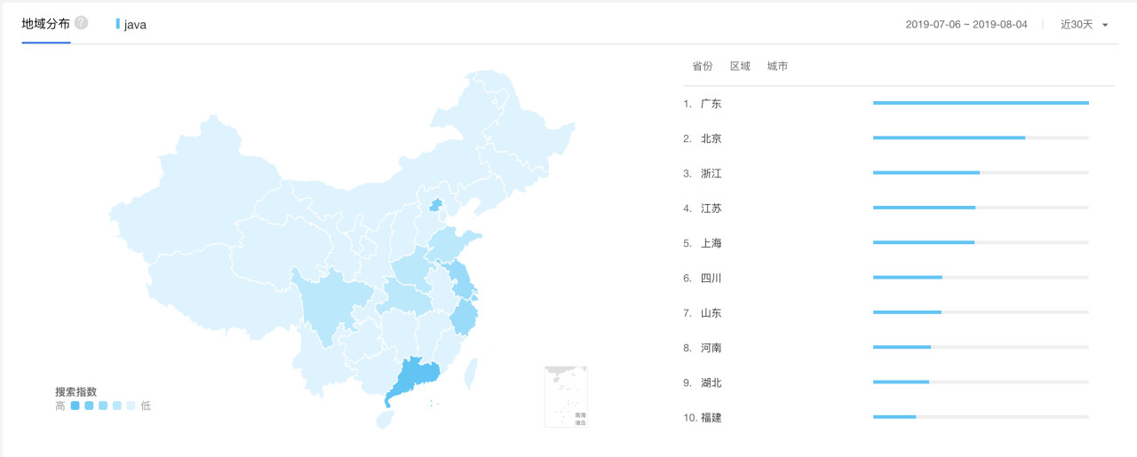 也可以通过第三方的工具进行探索性划分,比如按照Java从地域、年龄、兴趣分布.